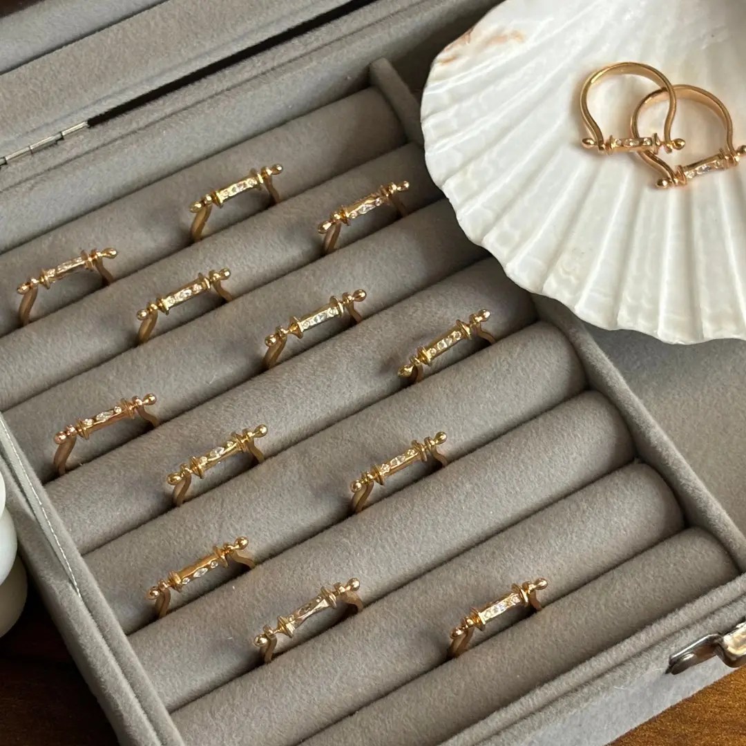 This ring features a bold drum roll design crafted from sterling silver and plated with a luxurious layer of gold. Its unique texture and eye-catching.